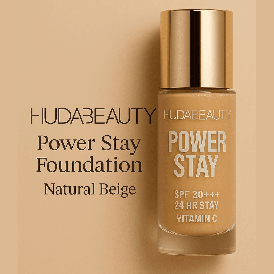 Meet your new go-to foundation — Huda Beauty Power Stay 24H Liquid Foundation. Designed for modern women who want full coverage without the heavy feel, this foundation blends effortlessly into the skin while protecting it with SPF 30+++ and the brightening power of Vitamin C.