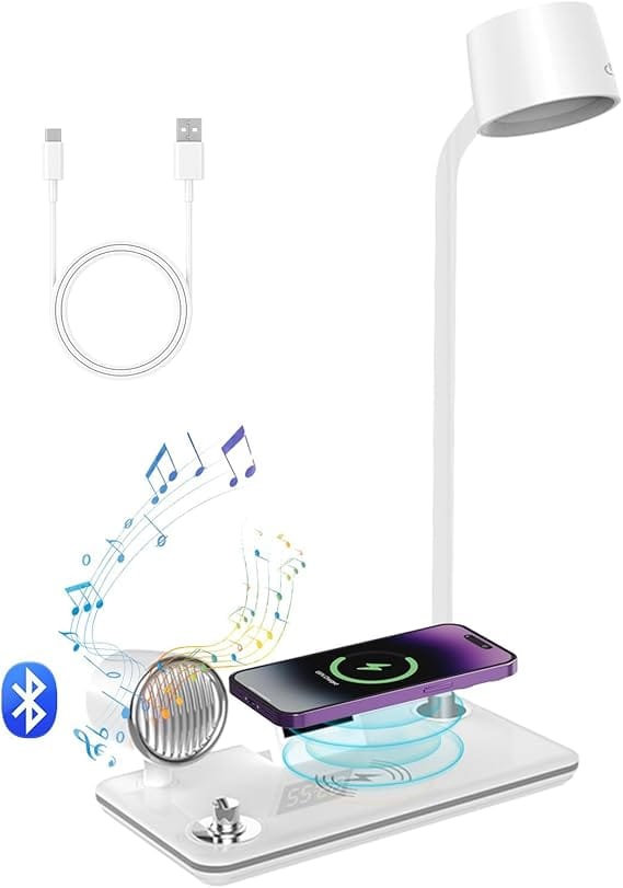 - Wireless Charging Desk Lamp: This 4-in-1 desk lamp combines lighting with a 15W fast wireless charger, allowing you to effortlessly charge your phone while working or studying. Simply place your device on the charging pad for convenient, one-step charging.