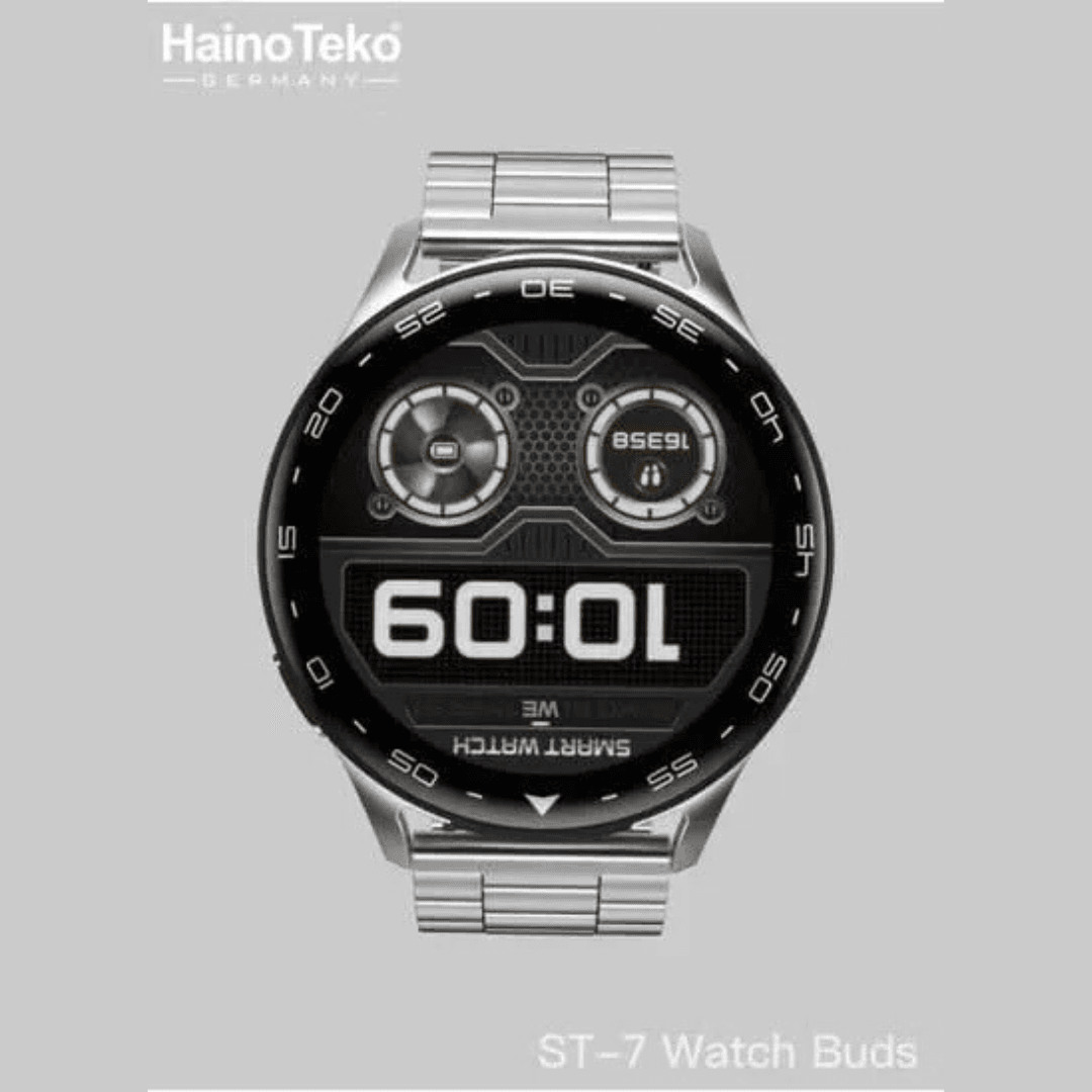 - Integrated Earbuds for Dual Functionality: The HainoTeko ST-7 redefines convenience with its unique design, integrating wireless earbuds directly into the watch. Perfect for listening to music, making calls, or accessing voice assistants, all without needing an extra carrying case.
