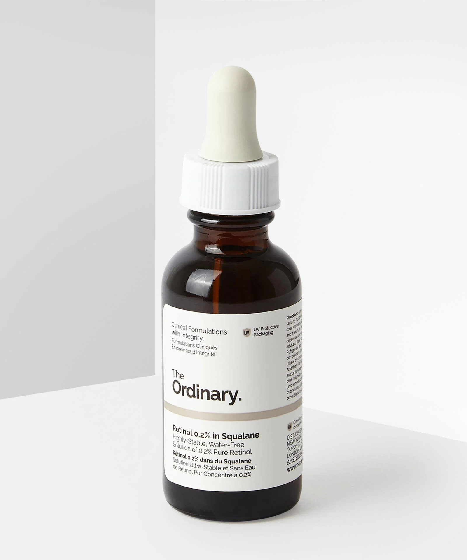 Retinol 0.2% in Squalane offers a water-free solution containing 0.2% retinol—an ingredient that improves the appearance of fine and dynamic lines that arise from a loss of collagen and elastin, while