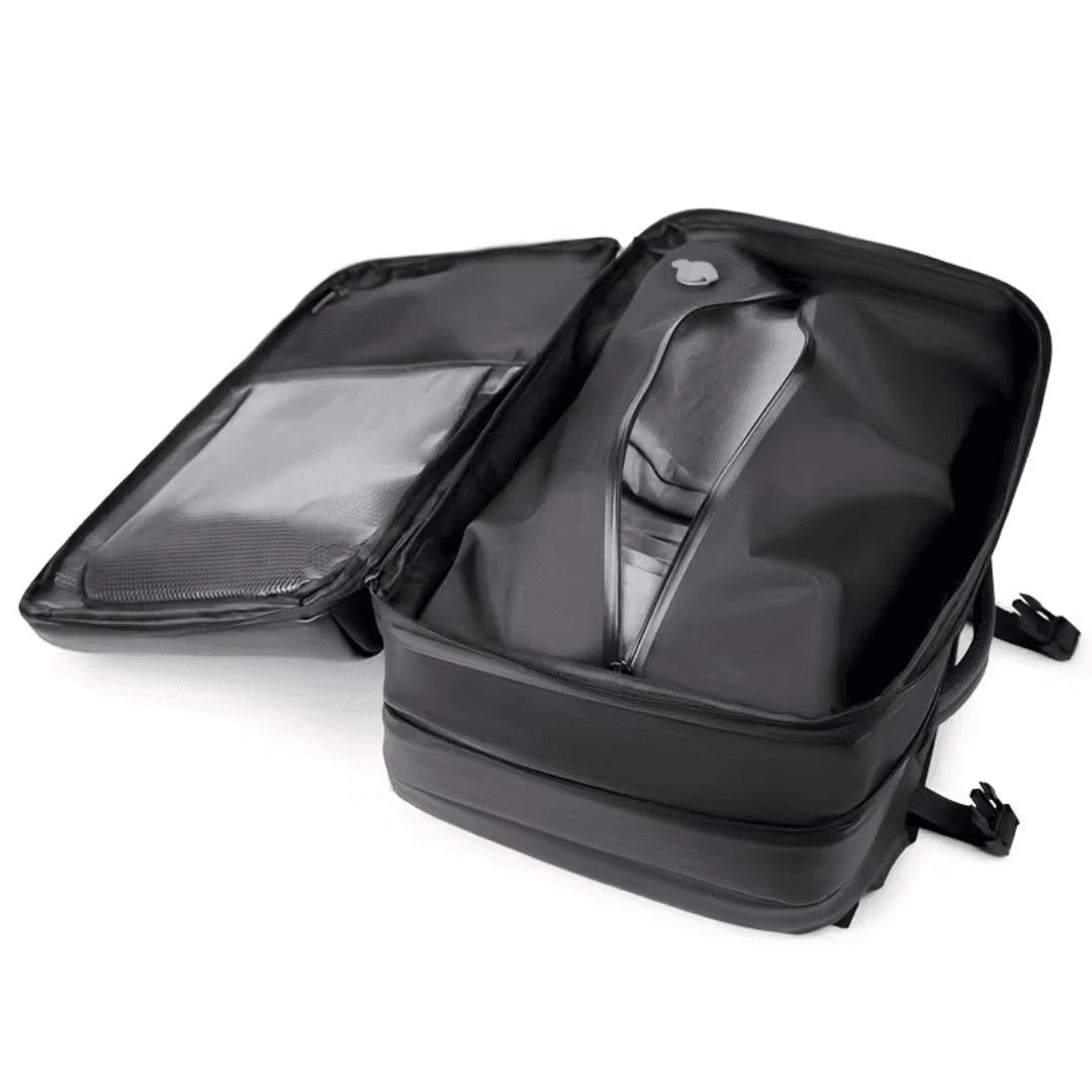 It combines tech protection and travel convenience — so you can carry everything, from your laptop to clothes, in one sleek, durable bag.