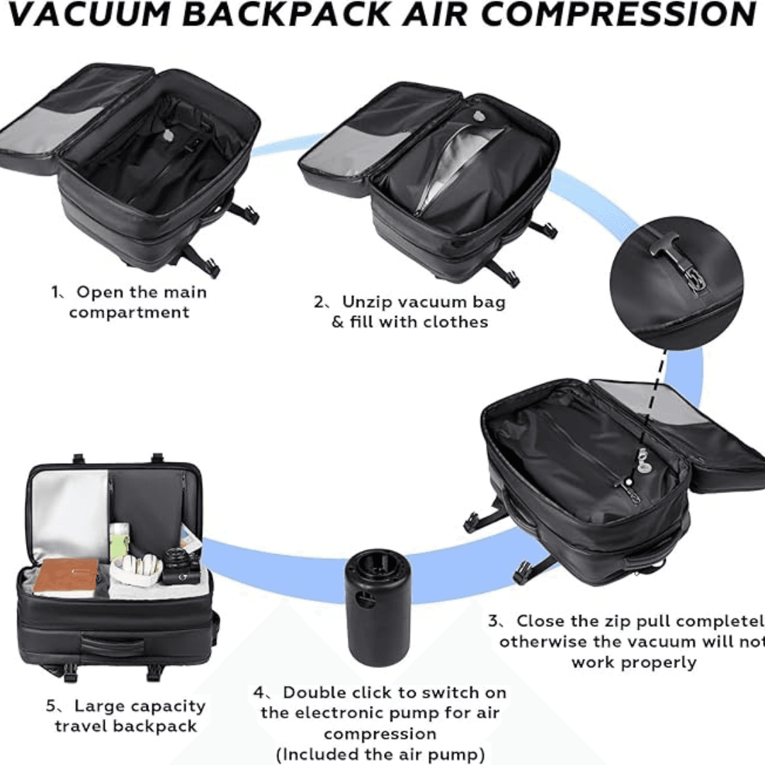 Equipped with a built-in manual air pump, allowing you to compress clothes, shoes, or travel essentials to save space.