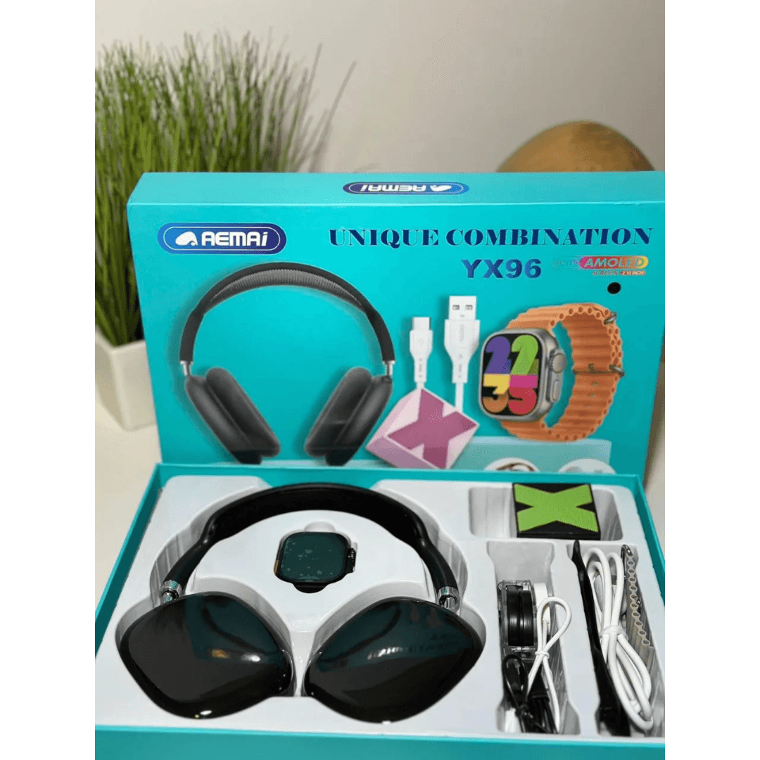 Experience style, convenience, and technology with the AEMAI YX96 Unique Combination Set, a perfect bundle featuring premium wireless headphones and a vibrant AMOLED display smartwatch. Designed for everyday use, fitness tracking, entertainment, and seamless connectivity, this combo is ideal for users who want performance and value in one package.